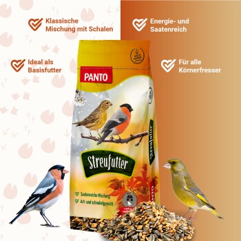 PANTO Wildvogel Streufutter mit ganzen Sonnenblumenkernen, Getreideflocken und