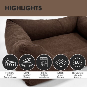- Orthopädisches Hundebett EMMA in Braun mit Memory Foam, Größe M (80x60 cm) und L (100x70 cm