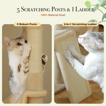 - Einzigartiges Design: Kaktusförmiger Kratzbaum in Grün und Gelb, 5 Plattformen, 3 Hängematten, Wohnung; ideal für mehrere Katzen.