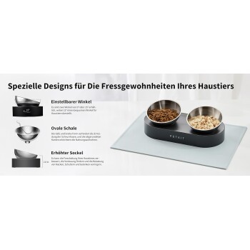 Eine erhöhte Schüssel mit Ständer kann das Unbehagen des Tieres reduzieren: Wenn Sie die Futterschale Ihrer Katze auf die richtige Höhe bringen, wird das Essen Ihres Haustieres erleichtert. Eine um 0/15 ° geneigte Futterschale kann den Druck auf Haustiere während der Fütterung verringern und so Wirbelsäulen- und Hüftprobleme in Zukunft vermeiden.