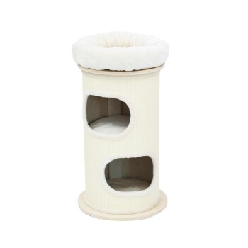 Zwei geräumige Höhlen mit weichen, herausnehmbaren und waschbaren Kissen machen den Bamboo L-Tower zu einem gemütlichen Rückzugsort. Jede Ebene ist leicht zugänglich, auch für ältere oder weniger agile Katzen.