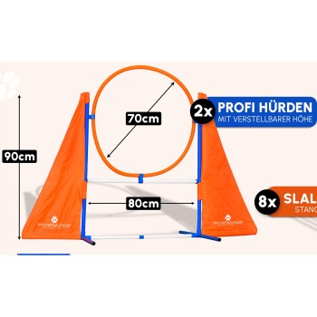 - ❗ACHTUNG - BITTE BEACHTEN: Es sind nur die 2 Agility-Hürden enthalten! 1️⃣🐶DAS BESONDERE: Du kannst die PfotenWunder® Agility-Hürden sowohl als Sprunghürde als auch als Sprungring nutzen! So wird Dein Agility-Parcours noch abwechslungsreicher!