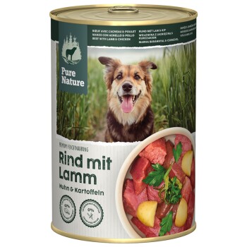Pure Nature Nassfutter Hund Adult 6 x 400 g Rind, Lamm und Huhn