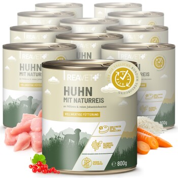 REAVET Hundenassfutter - Huhn mit Naturreis an Möhren & roten Johannisbeeren 12x9,6 kg