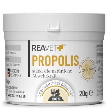 Unser REAVET Propolis Pulver wird schonend verarbeitet und enthält 100 % natürlich gemahlene Propolis in Lebensmittelqualität. Es eignet sich ideal als natürliche Ergänzung für Katzen und Hunde – zur Unterstützung einer ausgewogenen Ernährung, des allgemeinen Wohlbefindens und der natürlichen Hautfunktion.