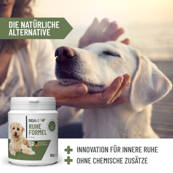 Sei mit unserer REAVET Ruheformel für Dein Tier da - durch seine Ausgeglichenheit wird es Dir Deine Nähe danken. Indem sich Dein Vierbeiner wohlfühlt, sorgst du für ein harmonisches Miteinander mit Deinem Tier. REAVET Ruheformel Pulver besteht aus einer erlesenen Auswahl an hochwertigen Rohstoffen. 100% glutenfrei, frei von chemischen Zusätzen, Antioxidantien und Additive.