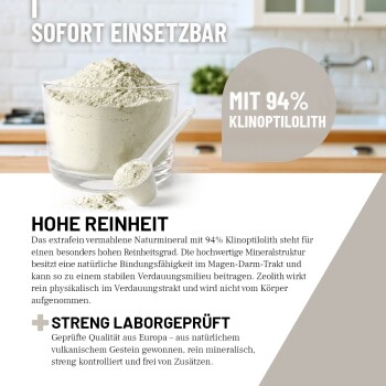 - Hochwertiges Zeolith mit 94% Klinoptilolith