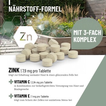 - ✓Zink trägt zur Erhaltung normaler Haut und eines glänzenden Fells bei
