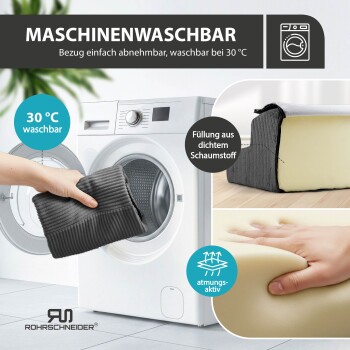 - Pflegeleichter Cordbezug: Dank Reißverschluss nimmst du den Cordbezug schnell ab und gibst ihn in die Waschmaschine bei 30°C. So bleibt die Oberfläche hygienisch, sauber und gemütlich.