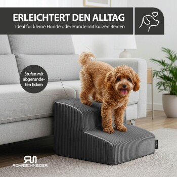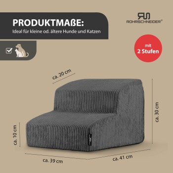 Rohrschneider ® Haustiertreppe mit rutschfester Unterseite und abnehmbarem Cordbezug dunkelgrau