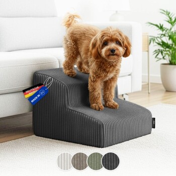 - Flexible Nutzung und harmonische Farben: Du stellst die Hundetreppe einfach dort auf, wo dein Tier eine Aufstiegshilfe benötigt – im Schlafzimmer am Bett oder im Wohnzimmer am Sofa. Vier verschiedene Farbvarianten passen sich dezent deinem Wohnstil an und machen die Hundetreppe zu einem praktischen, trendigen Heimtierartikel.