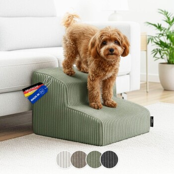 - Flexible Nutzung und harmonische Farben: Du stellst die Hundetreppe einfach dort auf, wo dein Tier eine Aufstiegshilfe benötigt – im Schlafzimmer am Bett oder im Wohnzimmer am Sofa. Vier verschiedene Farbvarianten passen sich dezent deinem Wohnstil an und machen die Hundetreppe zu einem praktischen, trendigen Heimtierartikel.