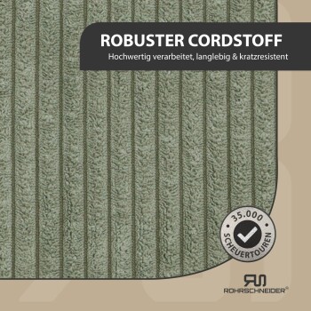 - Materialien: Schaumstofffüllung, Cordbezug (100 % Polyester - belastbar bis 35.000 Touren) mit Reißverschluss