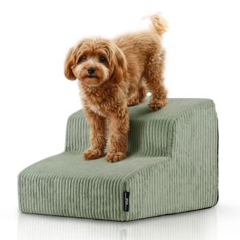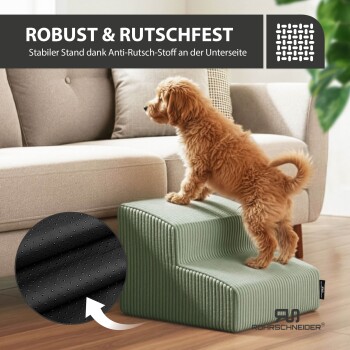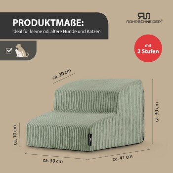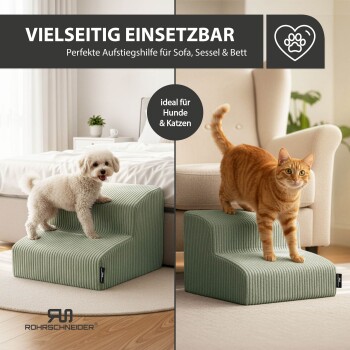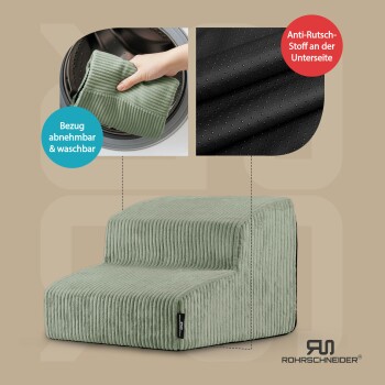 Rohrschneider ® Haustiertreppe mit rutschfester Unterseite und abnehmbarem Cordbezug hellgrün