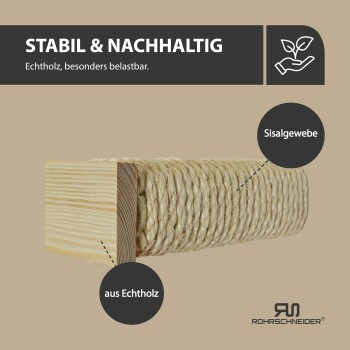 Rohrschneider ® Katzentreppe, Wandelement für Katzen mit starkem Sisalseil, 2-er Set natur / beige