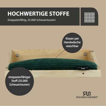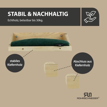 - Material des Katzenbetts: Massives Kiefernholz in naturbelassener Optik.