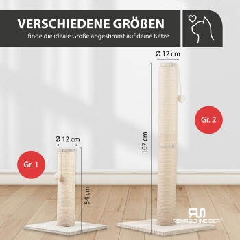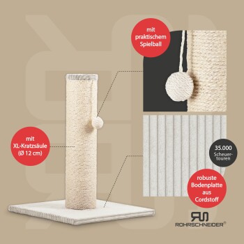 Rohrschneider ® Kratzbaum XL, extra dicke Kratzsäule Ø 12 cm, mit Spielzeug, Bodenplatte mit Cordbezug beige 40 cm, 54 cm, 40 cm