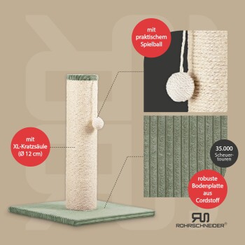 Rohrschneider ® Kratzbaum XL, extra dicke Kratzsäule Ø 12 cm, mit Spielzeug, Bodenplatte mit Cordbezug hellgrün 40 cm, 54 cm, 40 cm