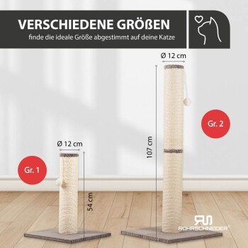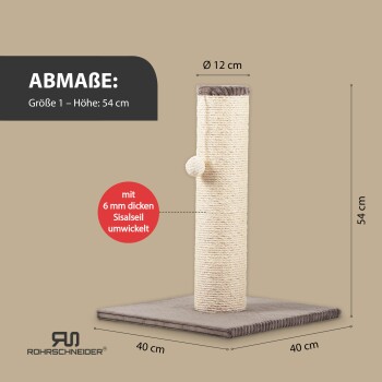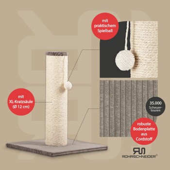 Rohrschneider ® Kratzbaum XL, extra dicke Kratzsäule Ø 12 cm, mit Spielzeug, Bodenplatte mit Cordbezug taupe 40 cm, 54 cm, 40 cm