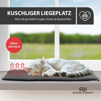 Rohrschneider ® Selbstwärmende Katzendecke, Fensterliege mit rutschfester Unterlage