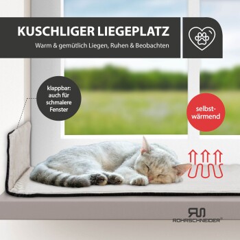 Rohrschneider ® Selbstwärmende Katzendecke, Fensterliege mit rutschfester Unterlage