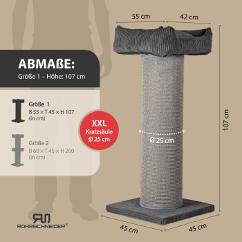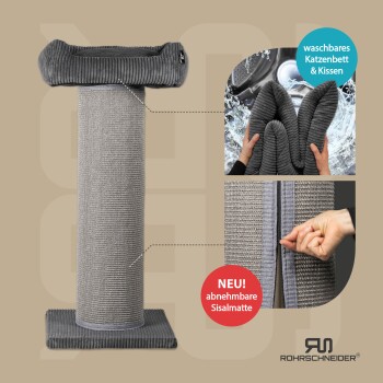 Rohrschneider ® XXL Kratzbaum, Cord-Bezug, tauschbare Kratzmatte, Bett waschbar