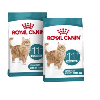 ROYAL CANIN® AGEING 11+ STERILISED ist eine Trockennahrung für kastrierte Katzen ab dem 11. Lebensjahr. Diese Rezeptur bietet eine genau ausgewogene Nährstoffmischung, die dabei hilft, ihre Gesundheit und Vitalität im Alter zu erhalten. Leicht zu kauende Kroketten ROYAL CANIN® AGEING 11+ STERILISED wurde für Senior Katzen entwickelt und von ihnen getestet. Es enthält leicht zu kauende Kroketten, um Ihrer Katze ein angenehmes Fütterungserlebnis zu bieten.