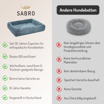 Das KUDDE Hundebett von SABRO ist seit 1995 das Original unter den orthopädischen Hundebetten – empfohlen vom bekanntesten Hundetrainer Deutschlands. Mehr als 500.000 Hunde schlafen bereits in diesem einzigartigen orthopädischen Hundekorb, der speziell für die gesunde Entlastung von Wirbelsäule und Gelenken entwickelt wurde.