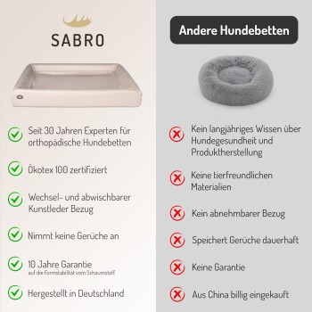 Das KUDDE Hundebett von SABRO ist seit 1995 das Original unter den orthopädischen Hundebetten – empfohlen vom bekanntesten Hundetrainer Deutschlands. Mehr als 500.000 Hunde schlafen bereits in diesem einzigartigen orthopädischen Hundekorb, der speziell für die gesunde Entlastung von Wirbelsäule und Gelenken entwickelt wurde.