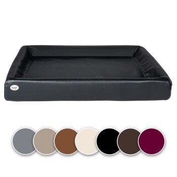 Der hohe Rand erinnert an die Wolfskuhle und lädt zum Anlehnen und Kopfablegen ein, während das robuste Kunstleder das Bett nicht nur elegant wirken lässt, sondern es auch besonders hygienisch macht. Dank der pflegeleichten Oberfläche können Schmutz, Haare und Flüssigkeiten einfach abgewischt werden. So bleibt das Hundebett auch für Allergiker-Hunde stets sauber und frei von Milben, Bakterien oder Pilzen.
