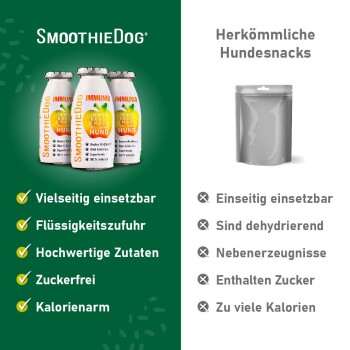 - 6x 250ml SmoothieDog – je 3x Rind & 3x Immunio Rind