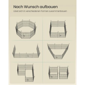 SONGMICS Kleintiergehege, mit Abdeckung, atmungsaktiv, Sonnenschutz, 8 Gitterplatten 1,75 m, 1,75 m, 80 cm