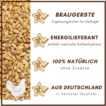 - Braugerste ist hervorragend als Zusatzfutter für Tauben und Hühner geeignet.