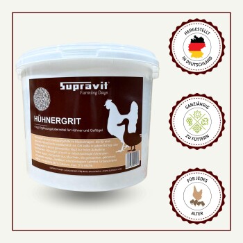 Supravit Kalkgrit für Hühner I Futterkalk Ergänzungsfutter für Hühner, Wachteln, Enten & anderes Legegeflügel I hoher Anteil an Calcium für Starke Eierschalen und eine gesunde Verdauung 4 kg