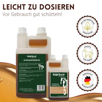 - Schwarzkümmelöl Nahrungsergänzungsmittel für Pferde
