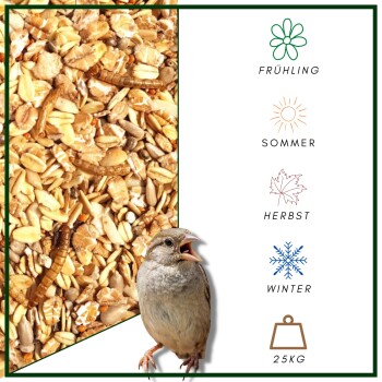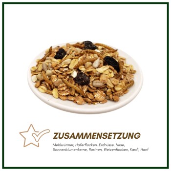 - Energie- und proteinreiches Wildvogelfutter mit schmackhaften getrockneten Mehlwürmern.