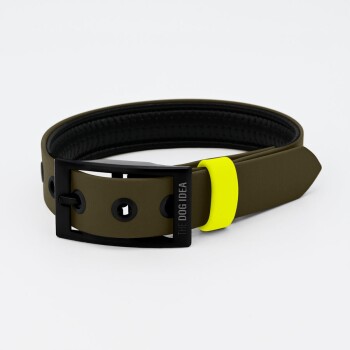 THE DOG IDEA Biothane Halsband Khaki neon gelb XL