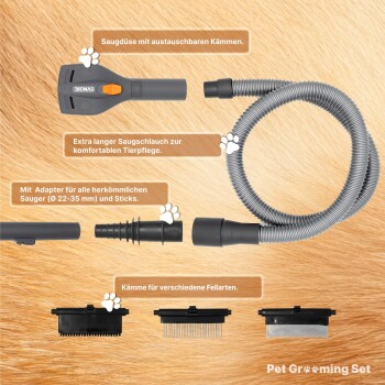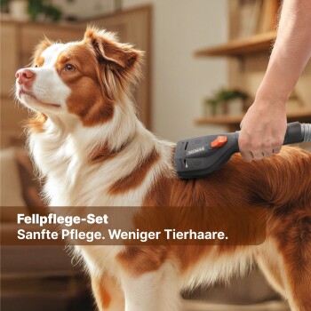 Mit dem THOMAS Fellpflege-Set pflegst du das Fell deines Haustiers und hältst gleichzeitig dein Zuhause sauber - in nur einem Schritt! Beim Bürsten mit dem Fellpflegekamm werden die Haare sofort in den Staubsauger gesaugt, sodass lose Haare direkt entfernt werden, bevor sie auf Boden oder Möbeln landen. So genießt dein Liebling eine sanfte Pflege, und dein Zuhause bleibt haarfrei. Mehr Komfort für dein Haustier - mehr Sauberkeit für dich.