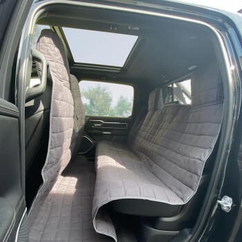Diese Autoschutzdecke von tierlando® ist ein Muss für jeden RAM-Fahrer mit Hund. Schützen Sie das Fahrzeuginnere Ihres Dodge RAMs oder ähnlich großen SUVs und Pickups* vor Verschmutzungen, Nässe und Tierhaaren. Unsere hochwertig verarbeiteten Autoschondecken bieten ihrem Hund mehr Sicherheit und Komfort und tragen zur Schonung und Werterhalt Ihres Fahrzeuges bei. Ein weiterer Pluspunkt ist die einfache und schnelle Anbringung der Autositzschoner dank festvernähter Kopfstützbezügen. Die Autoschondecken sind mit Schlitzen für die Anschnallgurte ausgestattet.