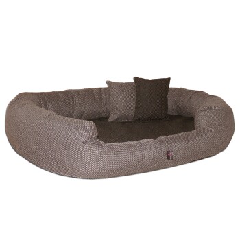 LINUS ORTHO PLUS vereint die hochwertigsten Attribute in puncto Gesundheit, Hygiene, Langlebigkeit und Design im Wohnambiente. Maximaler Schlaf- und Gebrauchskomfort für Hund und Mensch! Die Liegefläche der mobil verwendbaren Matratze wartet mit humanmedizinisch bewährtem Viscoschaum auf. Veterinäre empfehlen diese Qualität für Hunde mit Risiken oder Schäden an Knochen, Gelenken oder Wirbelsäule. Für gesunde Hunde Luxus pur, derart entlastet und durchblutet zu schweben. Moderner, mehrfarbiger Stoff mit einem schweren Handwebcharakter umgibt die Matratze. Bei der DUO Variante kommt ein pflegeleichtes Kunstleder zum Einsatz, auch für die anschmiegsame Ablage des Kopfes auf dem weich gepolsterten Rand. LINUS ORTHO PLUS ist in 4 Größen verfügbar: M 80cm, L 100cm, XL 120cm, XXL 150cm. Die Auswahl in 3 klassischen Farbtönen (grau, braun und beige) harmoniert perfekt mit anspruchsvollen Wohnkonzepten.
