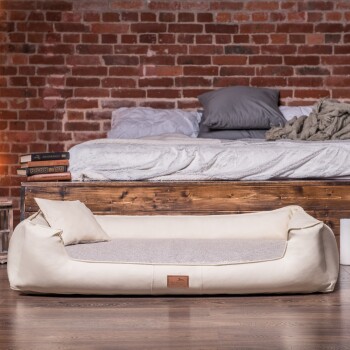 Tierlando ® Nonplusultra LINUS orthopädisches Hundebett Visco PLUS Kunstleder creme 90 cm, 22 cm, 75 cm