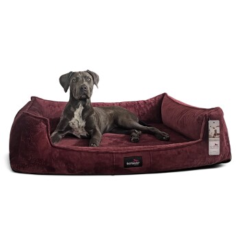 Tierlando ® Orthopädisches Hundebett FRANKLIN Kuscheliger Teddy-Stoff - Hundesofa bordeaux 1,3 m, 25 cm, 1 m