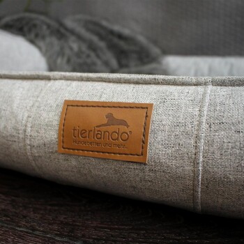 Der Bezug ist ein sehr eleganter, mehrfarbiger Stoff mit einem feinen Handwebcharakter. Die Struktur und Optik des Bezugsstoffes lassen sich mit fast jeder Wohnungseinrichtung in Einklang bringen. Der abgesenkte Eingang ermöglicht auch älteren Hunden einen einfachen Einstieg in das Hundebett.