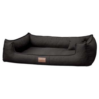 Der Bezug ist ein sehr eleganter, mehrfarbiger Stoff mit einem feinen Handwebcharakter. Die Struktur und Optik des Bezugsstoffes lassen sich mit fast jeder Wohnungseinrichtung in Einklang bringen. Der abgesenkte Eingang ermöglicht auch älteren Hunden einen einfachen Einstieg in das Hundebett.