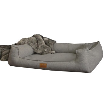 Der Bezug ist ein sehr eleganter, mehrfarbiger Stoff mit einem feinen Handwebcharakter. Die Struktur und Optik des Bezugsstoffes lassen sich mit fast jeder Wohnungseinrichtung in Einklang bringen. Der abgesenkte Eingang ermöglicht auch älteren Hunden einen einfachen Einstieg in das Hundebett.