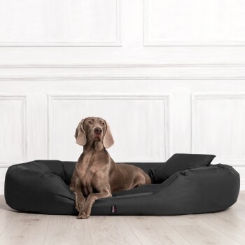 Das orthopädische Hundebett SAMMY VISCO ist ideal für die Prophylaxe und Behandlung bei HD. Vor allem große und schwere Hunde, die unter Gelenkproblemen leiden, wissen die Vorteile eines orthopädischen, gesunden Hundebettes zu schätzen. Die viscoelastische Hundematratze wird aus einer unteren Lage PUR-Schaum und einer mittleren Lage Formgedächtnisschaum VISCO (Memory Foam) hergestellt. Darüber befindet sich eine weiche Watte-Schicht. Der Bezug des Hundebettes aus Polyester besitzt durch die Struktur eine prächtige Erscheinung. Dieses fest gewebte Polyester 600D ist zudem bekannt für seine Belastbarkeit. Dank der klassischen ovalen Form und dem erhöhten Rand können sich Hunde gemütlich einrollen und den Kopf angenehm erhöht ablegen. Die Serie besteht aus 3 Größen (L 100cm, XXL 140cm, Übergroße XXXL 170cm) und 5 Farben (braun, graphit, schwarz, bordeaux, creme).