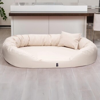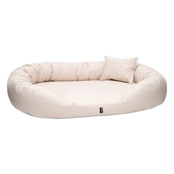 Tierlando ® Orthopädisches Hundebett SAMMY | Robuster Polyester | Dicke Umrandung creme 1,4 m, 30 cm, 1,05 m