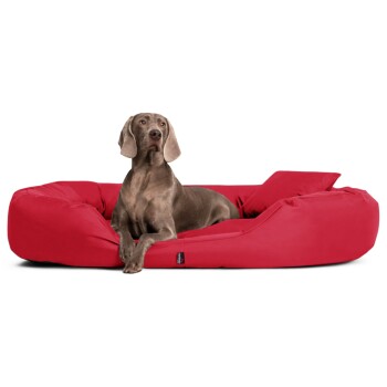 Tierlando ® Orthopädisches Hundebett SAMMY | Robuster Polyester | Dicke Umrandung dunkelrot 1,4 m, 30 cm, 1,05 m