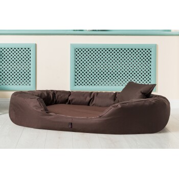 Das orthopädische Hundebett SAMMY VISCO ist ideal für die Prophylaxe und Behandlung bei HD. Vor allem große und schwere Hunde, die unter Gelenkproblemen leiden, wissen die Vorteile eines orthopädischen, gesunden Hundebettes zu schätzen. Die viscoelastische Hundematratze wird aus einer unteren Lage PUR-Schaum und einer mittleren Lage Formgedächtnisschaum VISCO (Memory Foam) hergestellt. Darüber befindet sich eine weiche Watte-Schicht. Der Bezug des Hundebettes aus Polyester besitzt durch die Struktur eine prächtige Erscheinung. Dieses fest gewebte Polyester 600D ist zudem bekannt für seine Belastbarkeit. Dank der klassischen ovalen Form und dem erhöhten Rand können sich Hunde gemütlich einrollen und den Kopf angenehm erhöht ablegen. Die Serie besteht aus 3 Größen (L 100cm, XXL 140cm, Übergroße XXXL 170cm) und 5 Farben (braun, graphit, schwarz, bordeaux, creme).