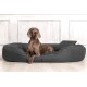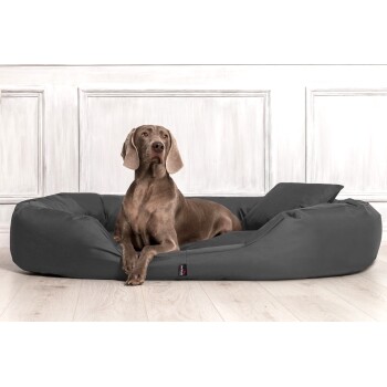 Das orthopädische Hundebett SAMMY VISCO ist ideal für die Prophylaxe und Behandlung bei HD. Vor allem große und schwere Hunde, die unter Gelenkproblemen leiden, wissen die Vorteile eines orthopädischen, gesunden Hundebettes zu schätzen. Die viscoelastische Hundematratze wird aus einer unteren Lage PUR-Schaum und einer mittleren Lage Formgedächtnisschaum VISCO (Memory Foam) hergestellt. Darüber befindet sich eine weiche Watte-Schicht. Der Bezug des Hundebettes aus Polyester besitzt durch die Struktur eine prächtige Erscheinung. Dieses fest gewebte Polyester 600D ist zudem bekannt für seine Belastbarkeit. Dank der klassischen ovalen Form und dem erhöhten Rand können sich Hunde gemütlich einrollen und den Kopf angenehm erhöht ablegen. Die Serie besteht aus 3 Größen (L 100cm, XXL 140cm, Übergroße XXXL 170cm) und 5 Farben (braun, graphit, schwarz, bordeaux, creme).